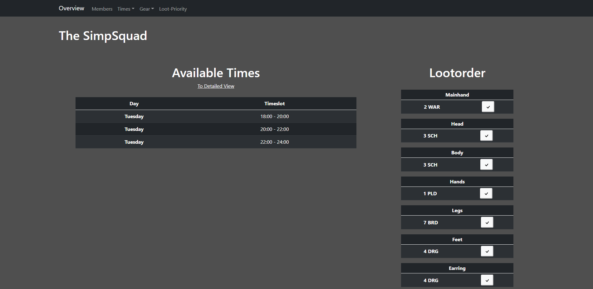 When joining my current FFXIV-Static I noticed that we used multiple separate spreadsheets to organize (times, lootpriority, etc), which got me thinking “What if there was a central place to organize all that?”