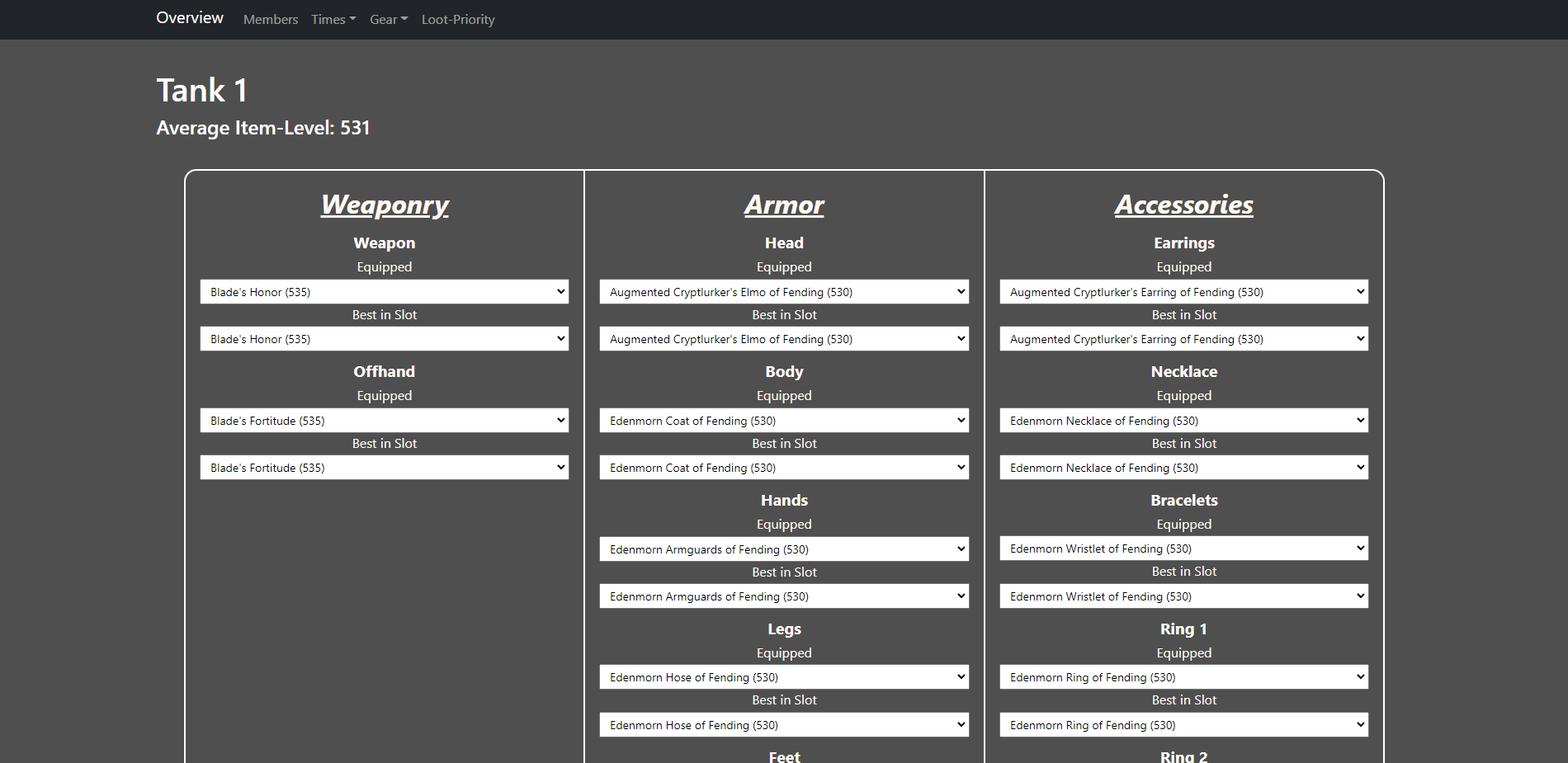 Shortly after I added the function for every member to set their gear, both their current and their desired (BiS) gear.